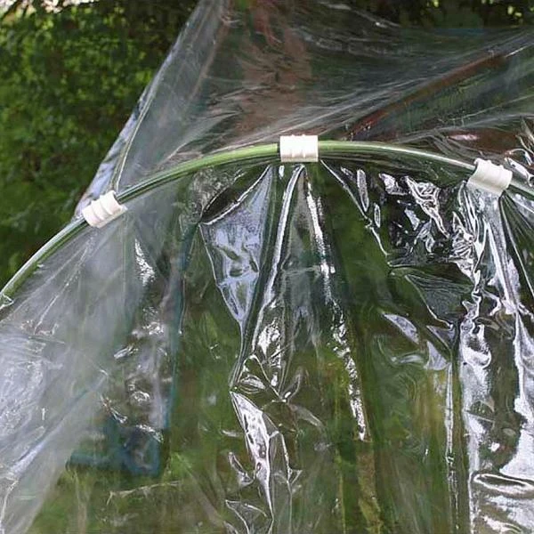 Maak insectengaas, vliesdoek, plastiek folie of weringsnet vast aan een boog of buis met deze kunststof klemmen.