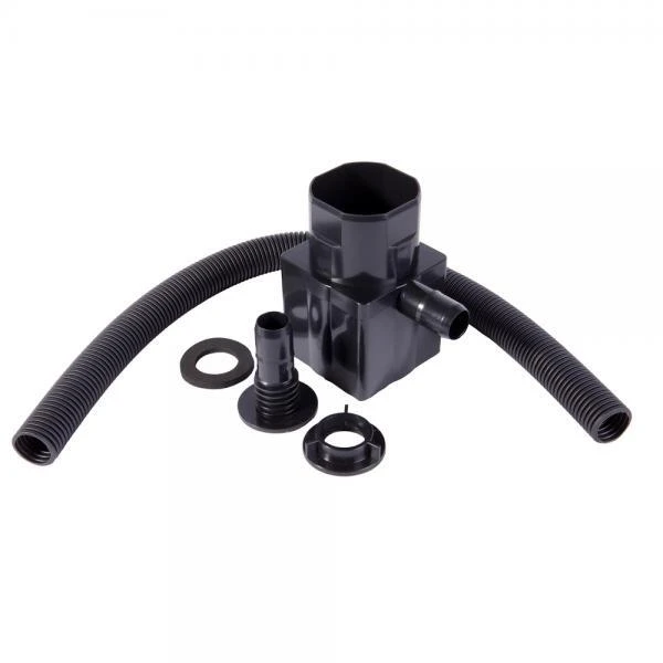 Door dit koppelstuk tussen twee stukken regenbuis te plaatsen, (rond of vierkant) kan je voortaan rechtstreeks regenwater aftappen vanuit de dakgoot in een regenton. Dit koppelstuk wordt met de regenton verbonden dankzij een 50 cm lange kunststof flexibeldarm en een aansluitventiel dat op de zijkant van de regenton wordt geïnstalleerd. Sommige tonnen zijn reeds voorgeboord, bij andere modellen boor je zelf een gat (25 mm).